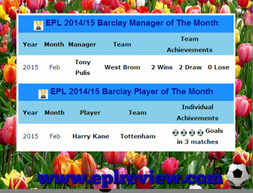 13/Mar/15 Harry Kane and Tony Pulis Won February Awards | ||||||||||||||||||||||||||||||