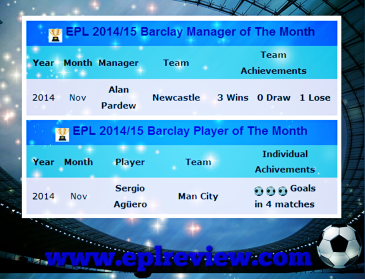 12/Dec/14 Sergio Agüero and Alan Pardew Won November Awards | ||||||||||||||||||||||||||||||||||||||